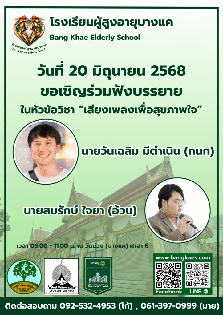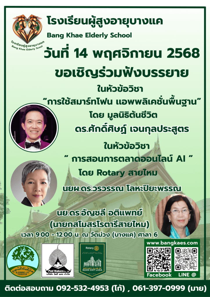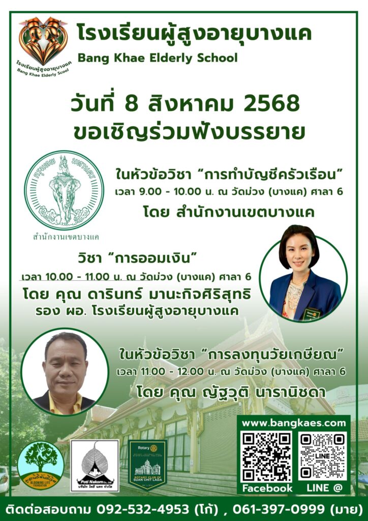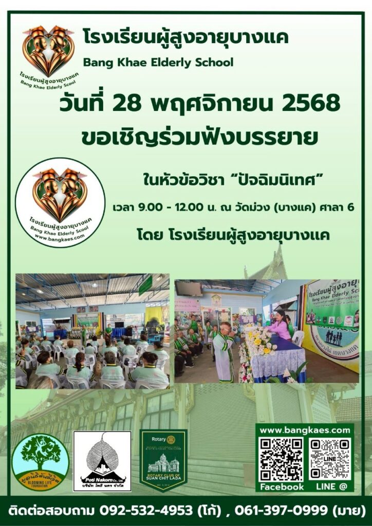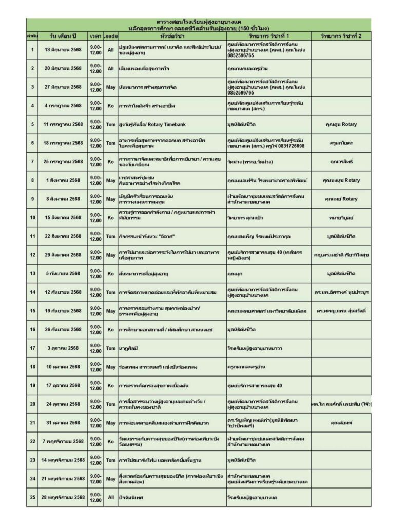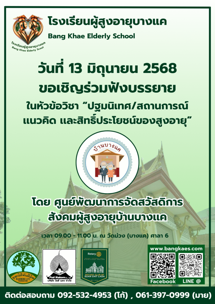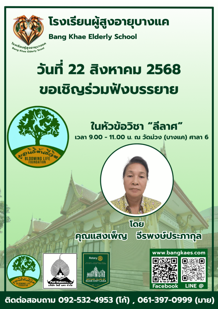 Home หลักสูตร หลักสูตรการเรียนการสอน หลักสูตรการเรียนการสอน รุ่นที่2 ตารางหลักสูตรและวิทยากรผู้สอน สมัครเรียน โรงเรียนผู้อายุบางเเค รุ่นที่3 จะเปิดรับสมัคร นักเรียน ในศุกร์ที่ 2 เดือน มิถุนายน ในทุกๆปี