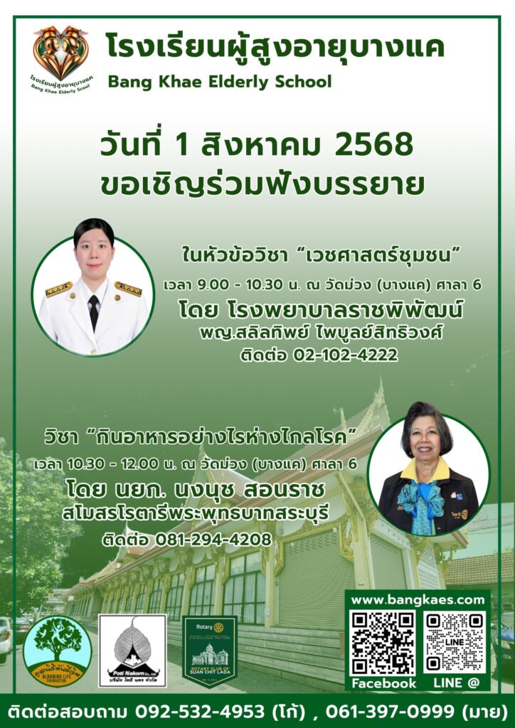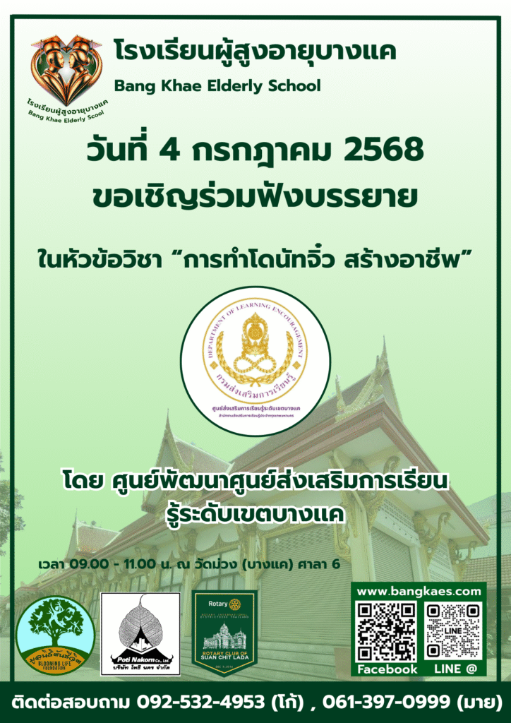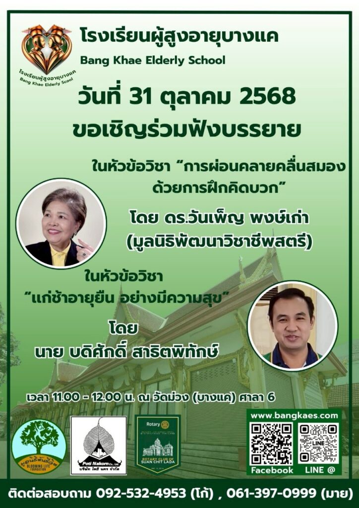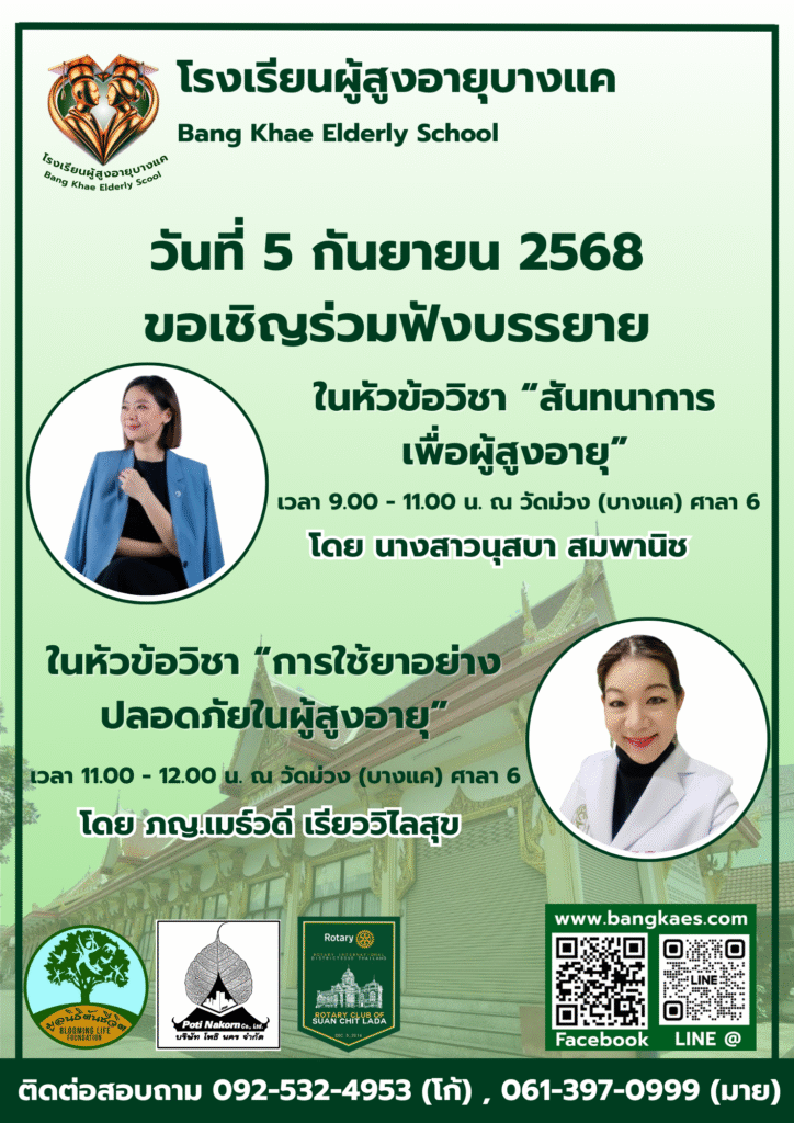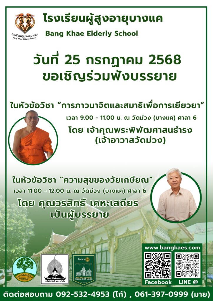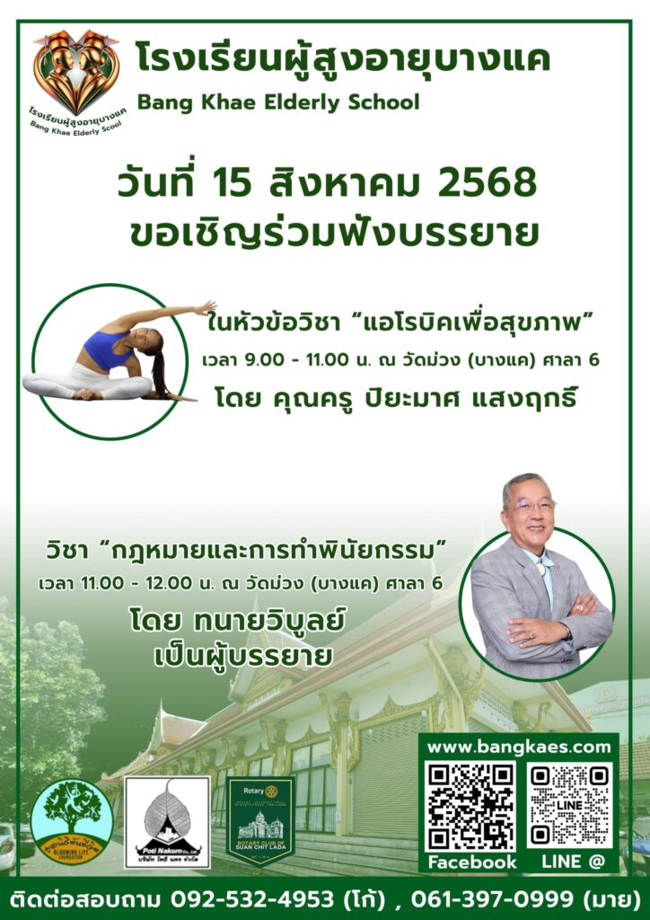 Home หลักสูตร หลักสูตรการเรียนการสอน หลักสูตรการเรียนการสอน รุ่นที่2 ตารางหลักสูตรและวิทยากรผู้สอน สมัครเรียน โรงเรียนผู้อายุบางเเค รุ่นที่3 จะเปิดรับสมัคร นักเรียน ในศุกร์ที่ 2 เดือน มิถุนายน ในทุกๆปี