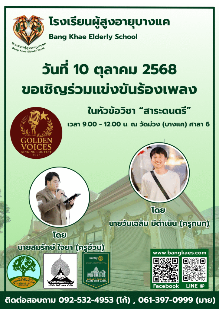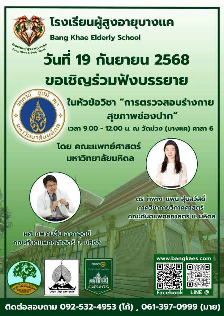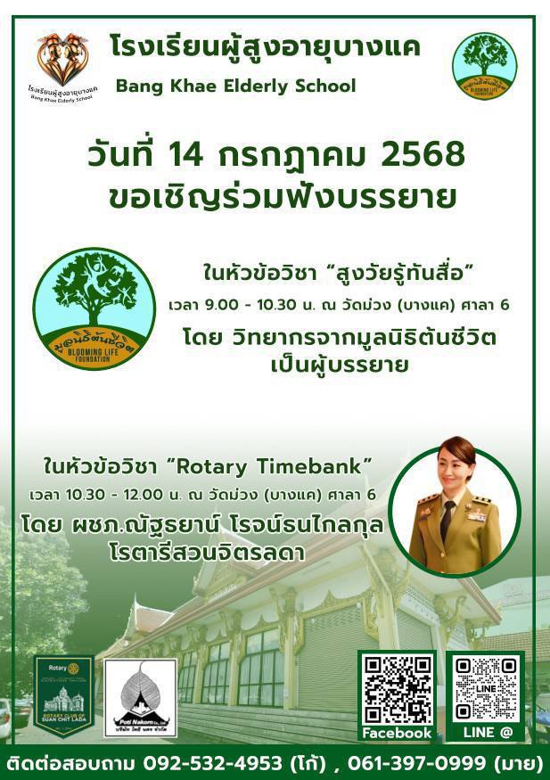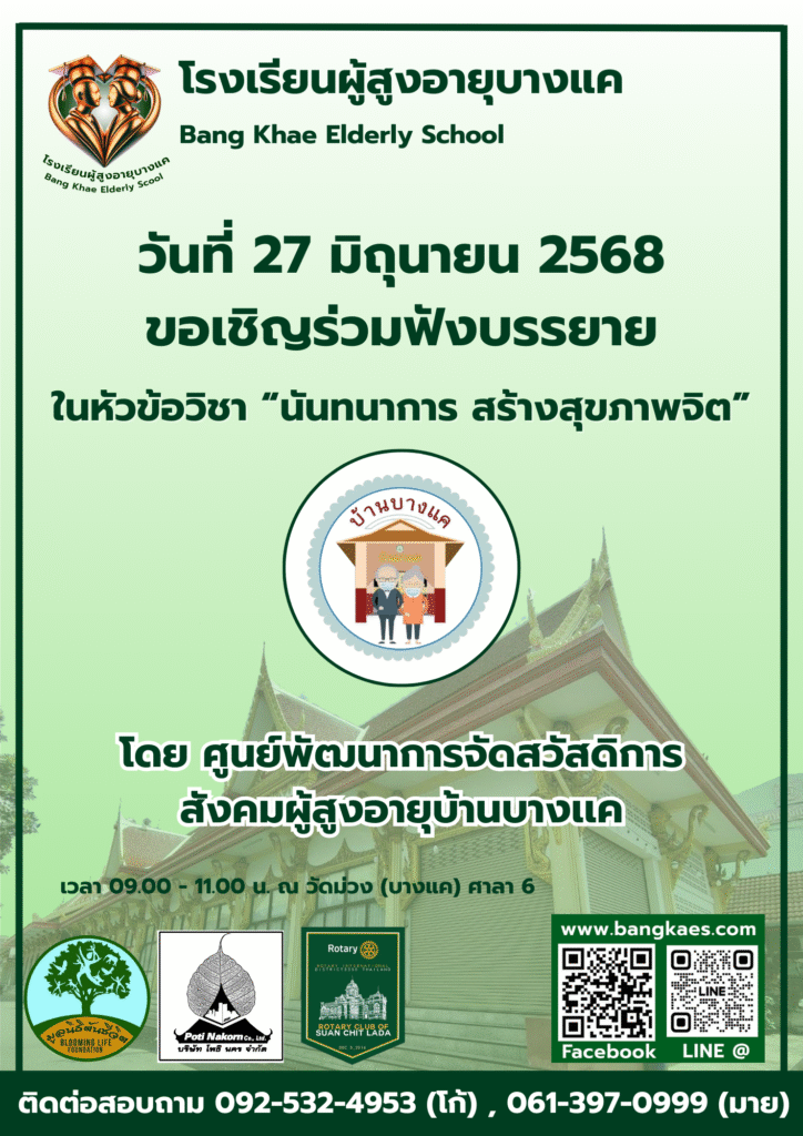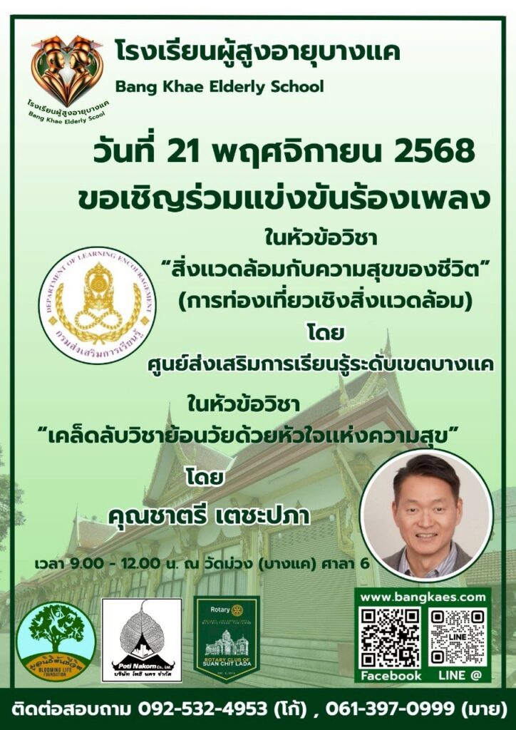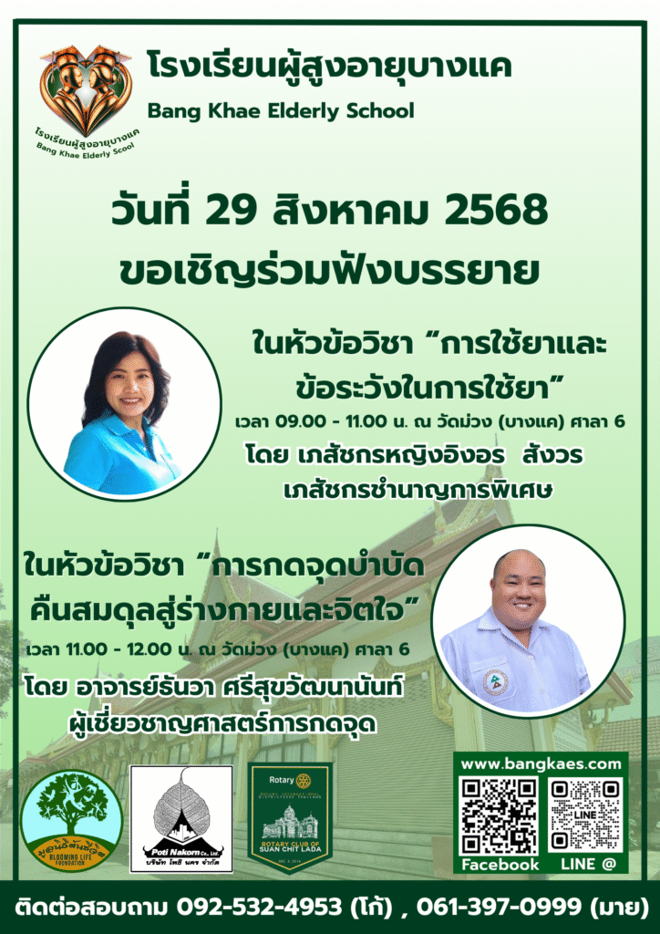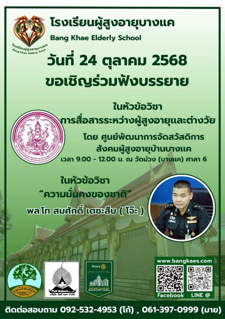 Home หลักสูตร หลักสูตรการเรียนการสอน หลักสูตรการเรียนการสอน รุ่นที่2 ตารางหลักสูตรและวิทยากรผู้สอน สมัครเรียน โรงเรียนผู้อายุบางเเค รุ่นที่3 จะเปิดรับสมัคร นักเรียน ในศุกร์ที่ 2 เดือน มิถุนายน ในทุกๆปี